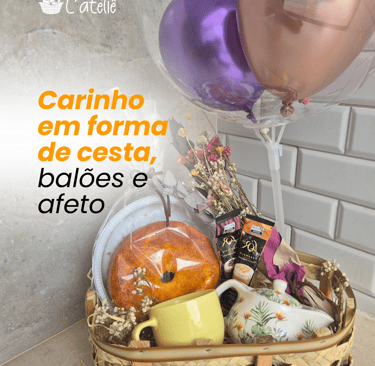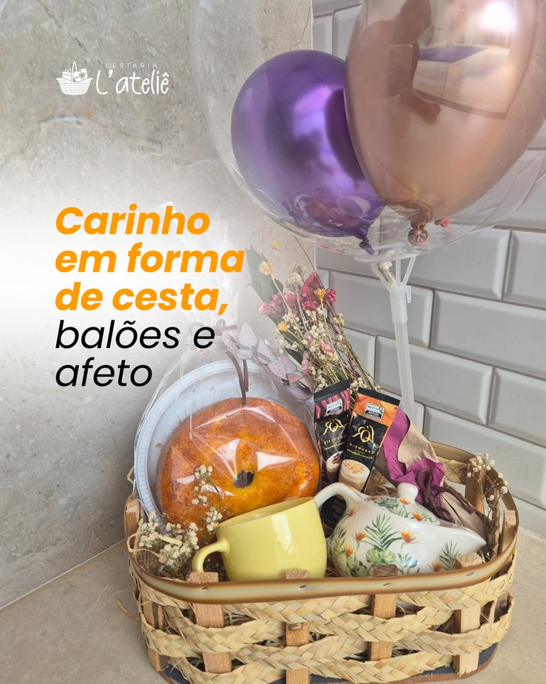 Sabe aquele presente que faz os olhos brilharem logo de cara? É isso que buscamos criar com cada cesta da Cestaria L’ateliê. Detalhes delicados, composição harmônica e aquele toque de carinho que transforma a entrega em um momento inesquecível. Essa cesta foi pensada para surpreender com leveza e elegância: bolo artesanal, louça decorada, sachês de café, flores secas e balões para completar a experiência. Ideal para aniversários, agradecimentos ou simplesmente para surpreender alguém que você ama com um “bom dia” especial. 🎁 Viva a experiência de presentear com emoção. 🌐 Personalize a sua em: Cestas Personalizadas com Carinho e Sofisticação Online | CESTARIA L'ATELIÊ 📍 Franca/SP – Rua Salim Emer, 320 – São Joaquim 📸 Instagram: @cestarialatelie