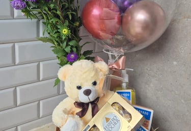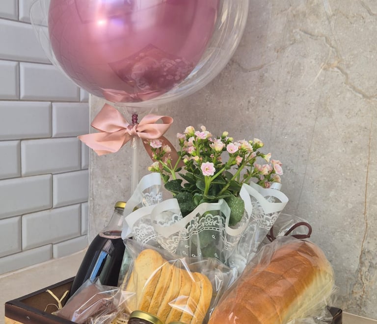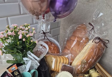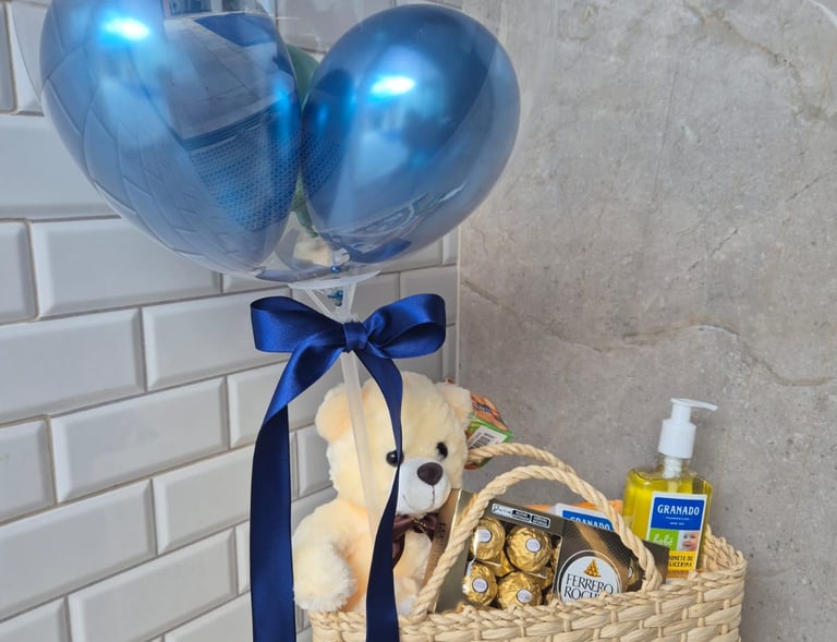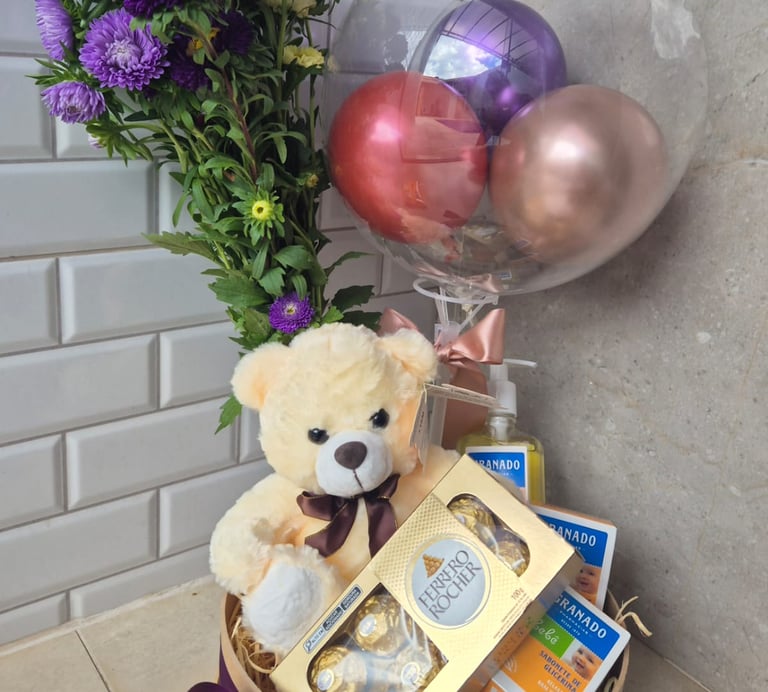 As cestas de aniversário são montadas conforme o perfil da pessoa presenteada: doces, snacks, flores, balões, bebidas ou mimos que tornam o momento ainda mais marcante.